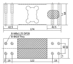 WST204 model single point load cell size is very big, It is 174×65×60mm, It suitable for 600*600mm size platform. It could use on aerial work platform for lift, or use on Slaughter scale, Material of aluminium alloy, surface anodic oxidation treatment.